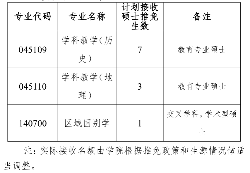 (1)学科教学(历史):只招收本科专业为历史学类或教育学类专业的推免生。