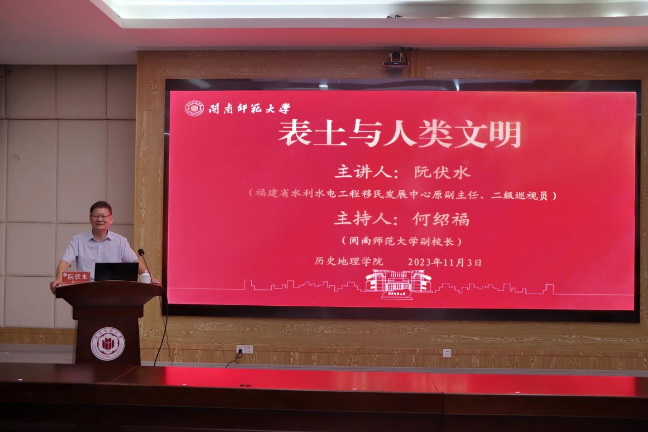 11月3日下午,福建省水利水电工程移民发展中心原副主任、二级巡视员阮伏水应邀莅临公司,举行题为“表土与人类文明”的专题讲座。公司党委常委、副董事长何绍福出席并主持本次讲座,PA视讯集团官方网站师生到场聆听。