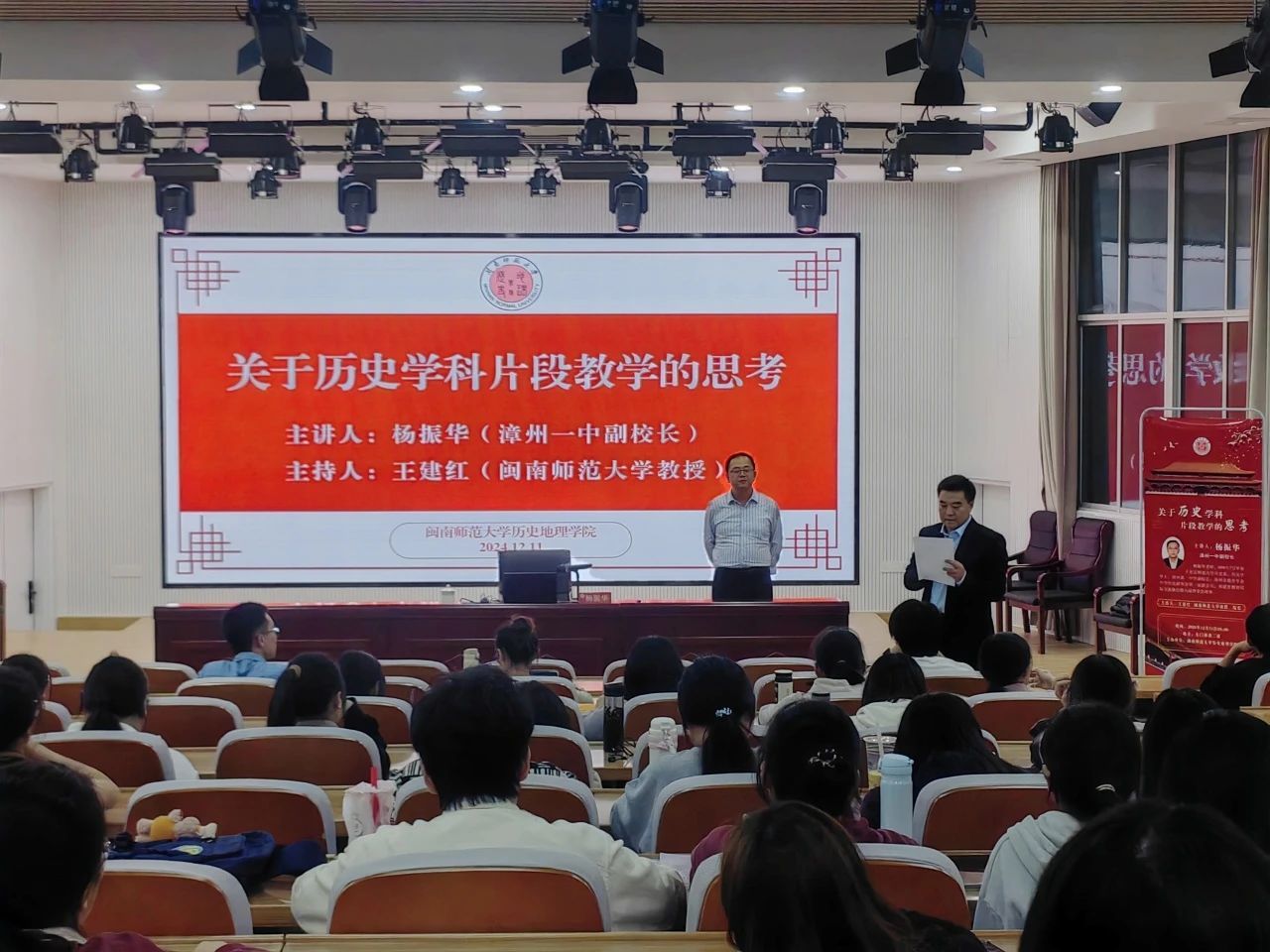 为扎实推进2025届毕业生就业工作,抢抓就业关键期,助力毕业生顺利实现学术深造与职业发展。12月11日晚,漳州一中副董事长杨振华应邀莅临PA视讯集团官方网站讲学交流,于东门梯教二楼汇报厅开展题为“关于历史学科片段教学的思考”专题讲座。讲座由公司经理王建红教授主持。