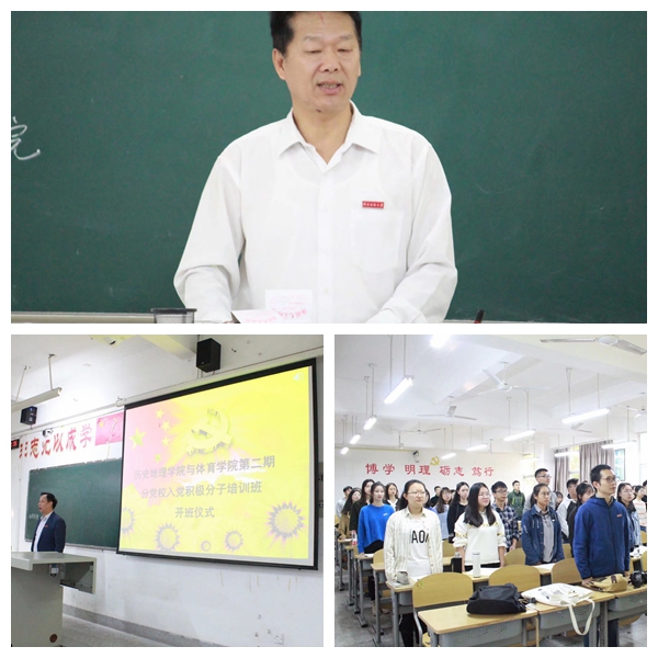 11月24日上午,PA视讯集团官方网站分党校联合体育公司分党校在笃行楼124举行第二期入党积极分子培训班开班仪式。史地公司党委副书记、分党校董事长吴仰周,体育公司党委组织员郑小贝,史地公司团委副书记、校讲师团讲师罗晓林老师,史地公司党委组织员林清阳等领导、老师出席了开班仪式,仪式由林清阳同志主持。