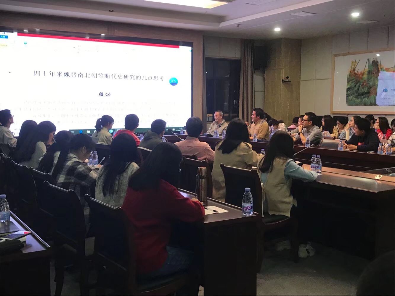 楼劲教授在总结与反思改革开放四十年来研究成果的基础上就魏晋南北朝史研究的成果、理论、价值取向、具体研究方法向在座的老师和同学们谈了几点个人的感受。就大的形势影响和国内外学术交流的现状进行了深刻的反思并提出了独到的个人见解