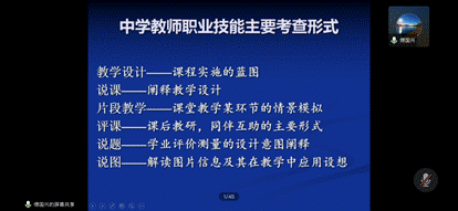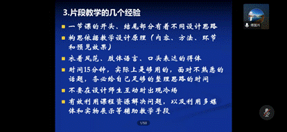 然后,傅国兴老师就说课和评课等其他方面为大家做了进一步的方法讲解,让同学们更加清楚说课的内容和需要注意的几大问题,也让同学们对于评课的主要指标和片段教学的一些经验有了更为具体的印象。