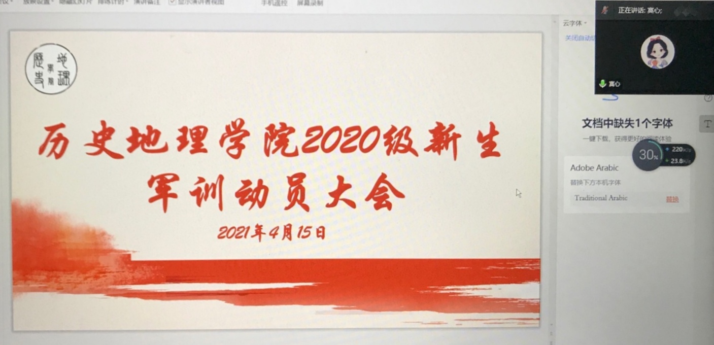 4月16日,PA视讯集团官方网站2020级员工军训动员大会在腾讯会议举行,辅导员方灿莹老师和全体2020级员工一同参加。