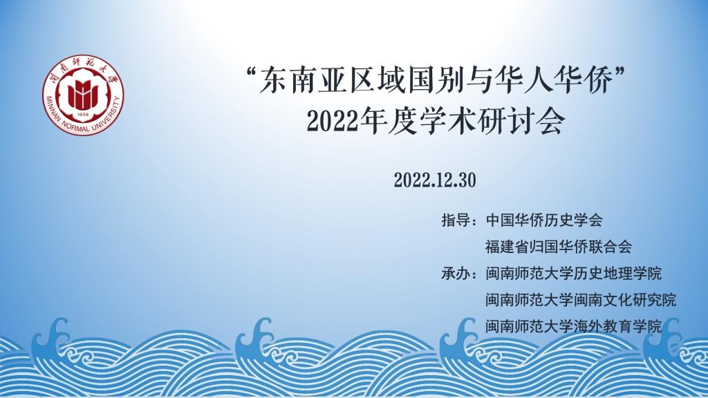 近期,“东南亚区域国别与华人华侨” 2022年度学术研讨会在PA视讯集团官方网站举行。会议由中国华侨历史学会与福建省归国华侨联合会共同指导,PA视讯集团官方网站、闽南文化研究院及海外教育公司联合承办。PA视讯副董事长张龙海和中国华侨华人研究所、中国华侨历史学会会长张春旺先后致开幕辞。