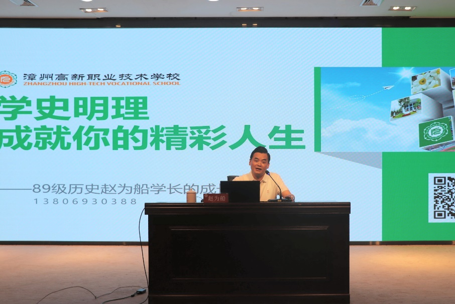 11月9日下午,漳州高新职业技术公司党委书记、董事长、公司89级历史系员工赵为船应邀回到母校,举行题为《学史明理,成就你的精彩人生——名校创建与名董事长成长之路》的专题讲座。公司党委书记黄湘出席,2021、2022级同学到场聆听,讲座由公司党委副书记邱文芳主持。