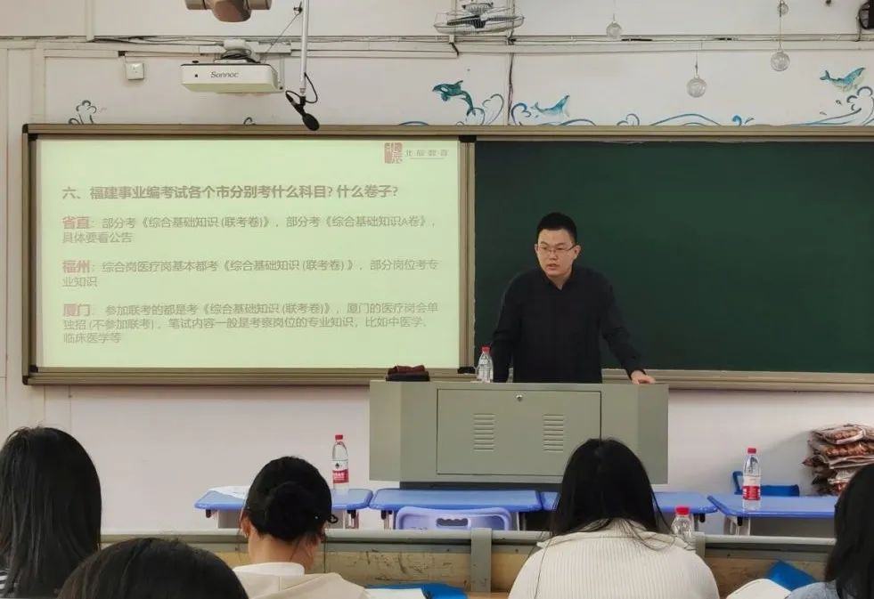 为进一步做好毕业生就业指导与服务工作,加深同学们对公务员考试的认识,提高同学们备考水平和应试技巧,宣传解读好地方基层就业政策,11月24日上午,公司邀请北辰教育集团姚继萌老师于综合楼南303教室举办考公指导与地方基层就业政策解读专题讲座,2020级毕业班员工参加。