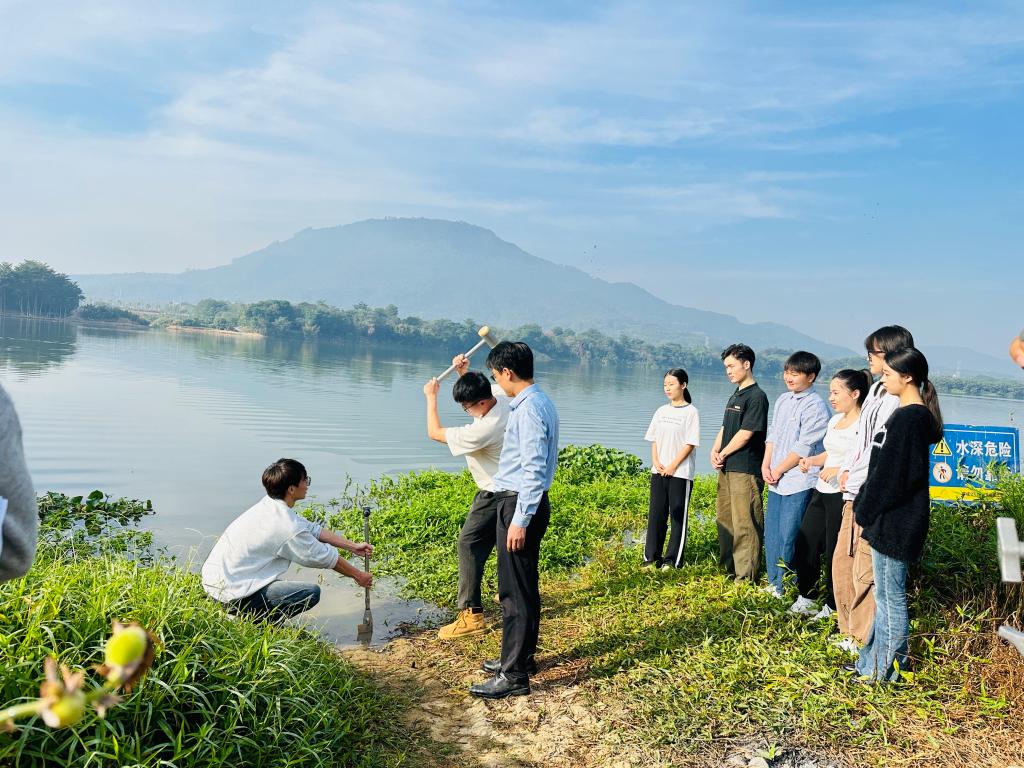 潘大东老师带领大家了解九龙江流域的地质条件、气候、入海泥沙、径流量等,讲授九龙江河口现代水文泥沙动力条件,如九龙江河口的涨落潮流特征、洪枯季沉积动力特征、河口盐度锋和悬沙锋的位置及季节变化特征。