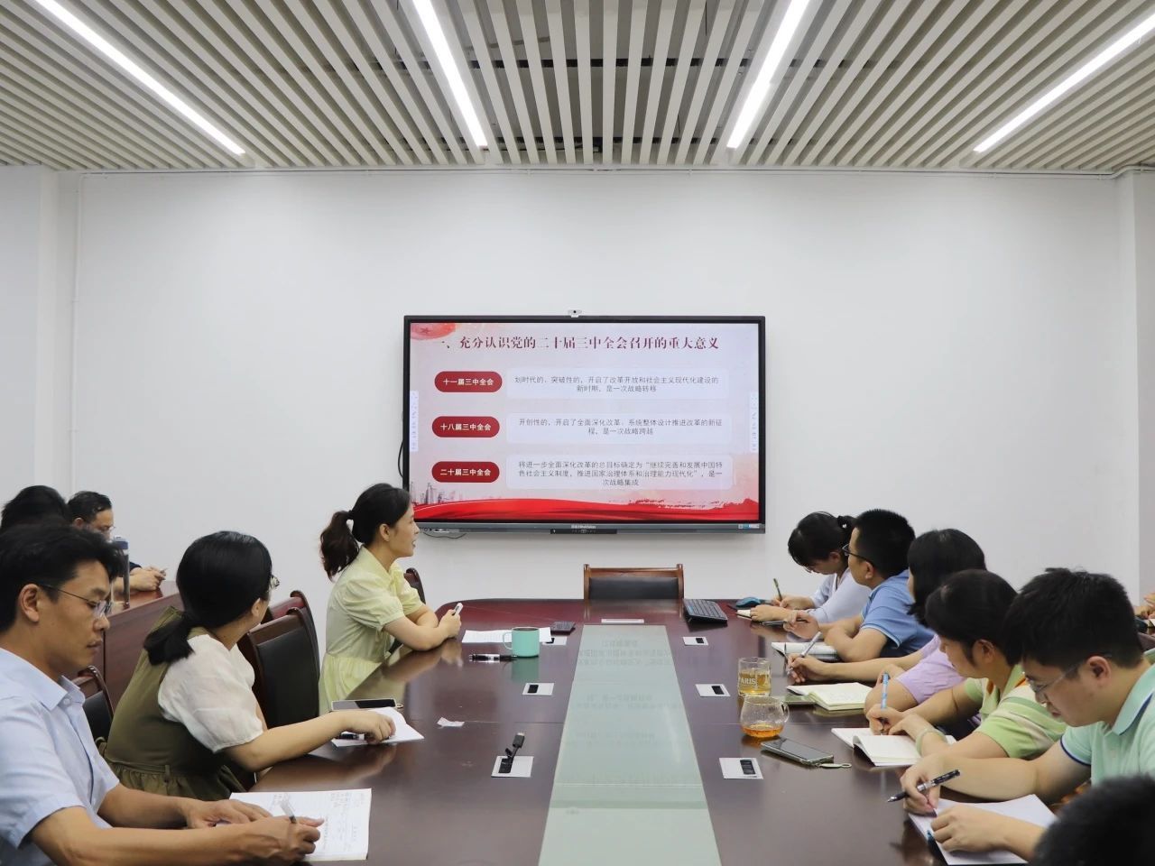 公司党委书记黄湘作《深学细悟全会精神,笃行实干抓好落实》的主题党课,她从全会召开的重大意义、全面深化改革的重大成就、全面深化改革的总目标以及如何贯彻落实全会精神等方面着手,带领党员们深入学习全会精神,把握其深刻内涵、精髓要义、实践要求。她强调,全体党员要在提升能力本领、提升落实效率、提高党性修养上下功夫,深学细悟、勇于担当、积极作为,以钉钉子精神抓好各项任务的谋划细化和组织落实,把全会精神融入思想、化为实践、抓出成效,为推动公司事业高质量发展作出应有的贡献。